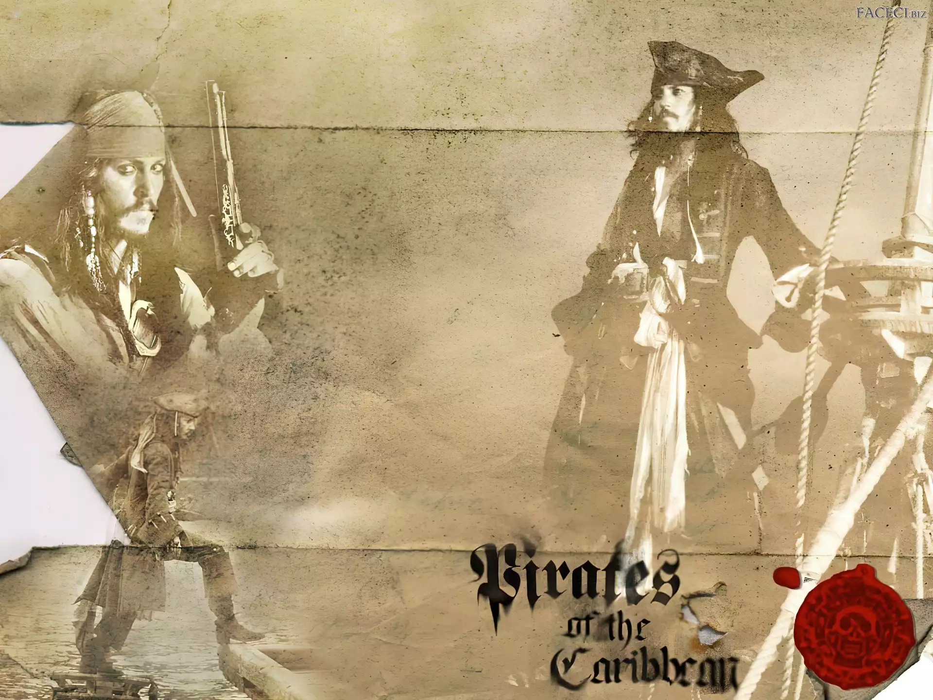 kartka, Johnny Depp, Piraci Z Karaibów, pieczęć