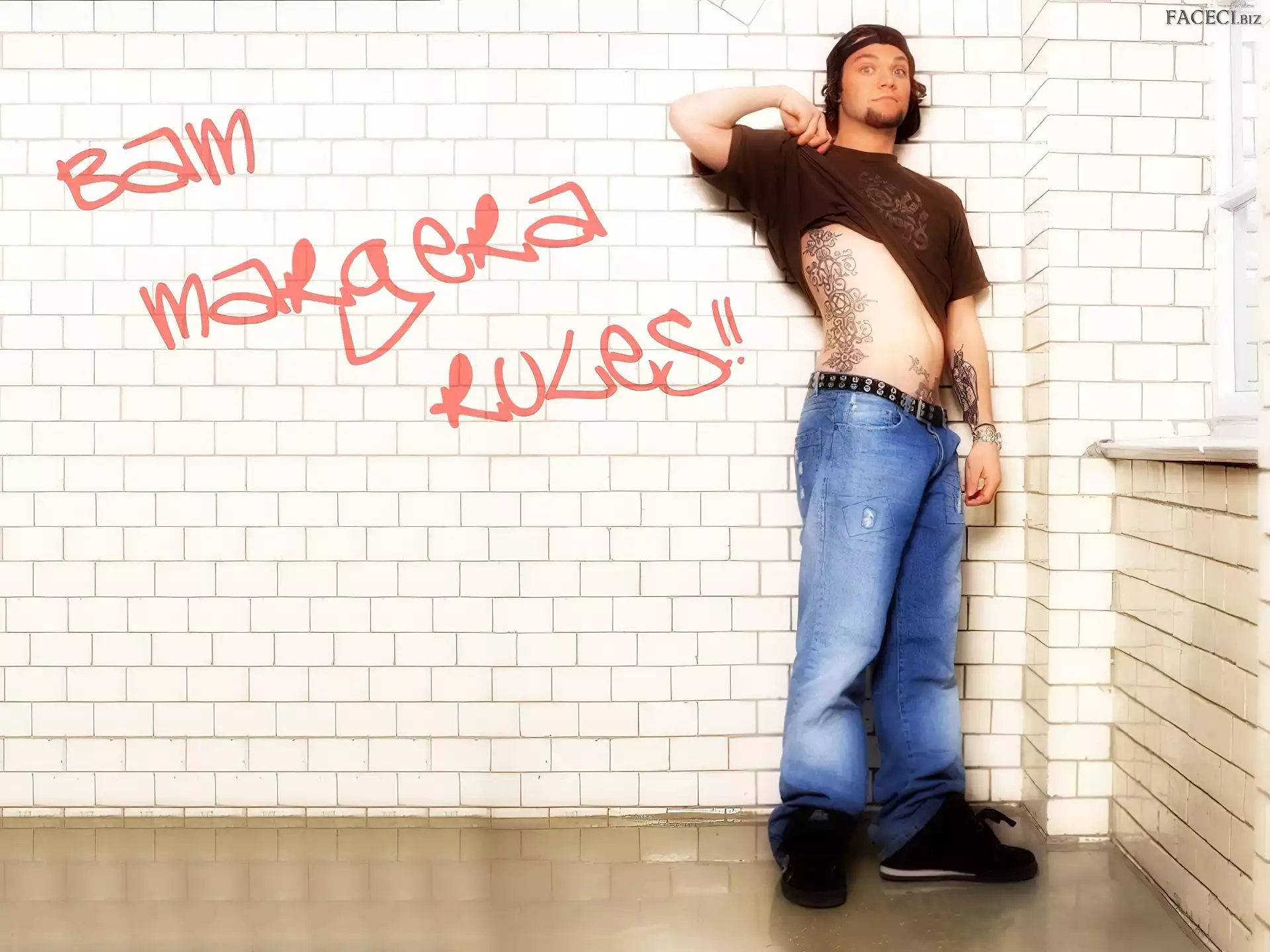 okulary, Bam Margera, butelka kurtka, Bam Margera, rozpięta zegarek, Bam Margera, deskorolka okulary, Bam Margera, twarze t-shirt, Bam Margera, brązowy włosy, Bam Margera, ciemne